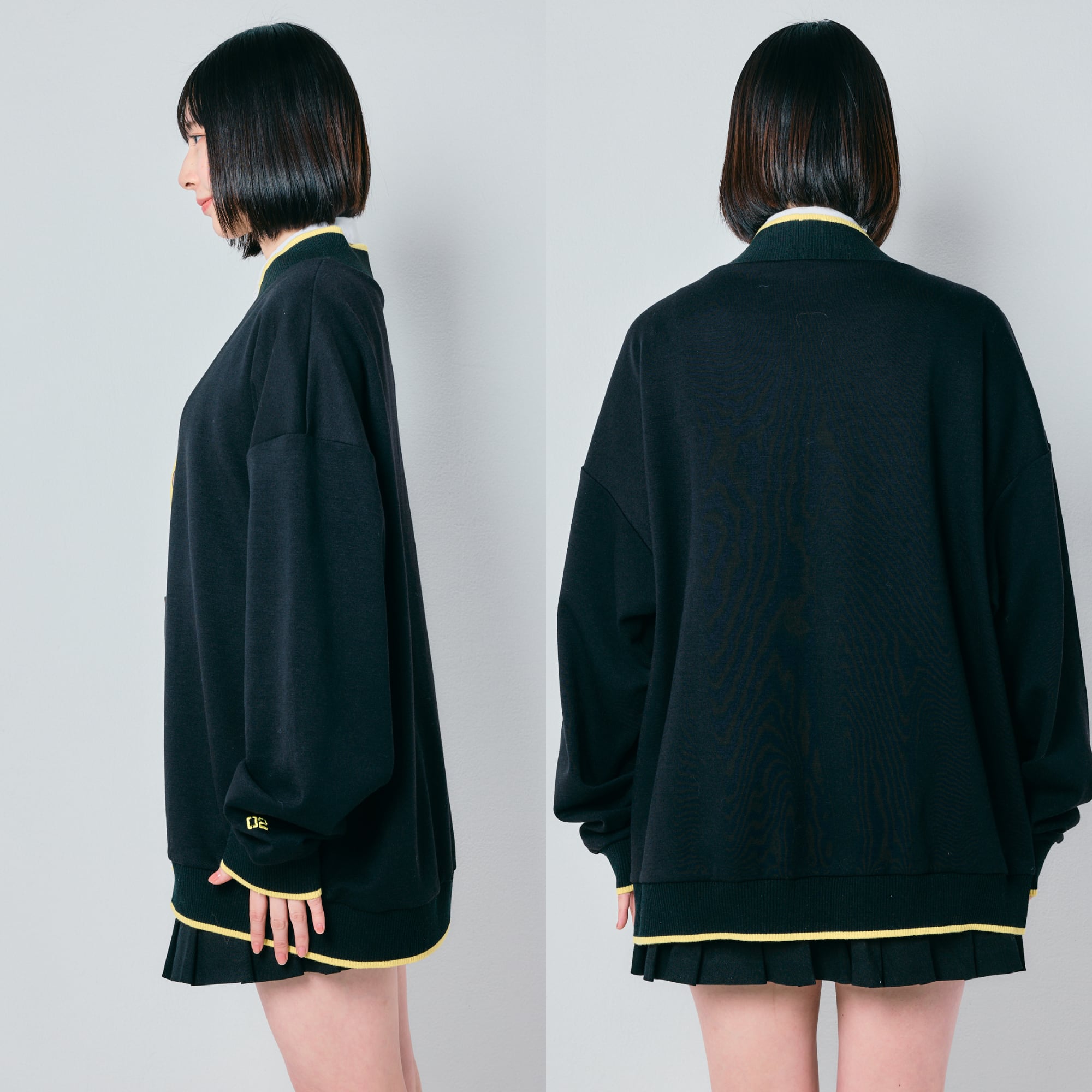 ロングシーズン着用できるサラッとした生地感、大きめのボタン、袖のたまり具合、襟・裾・袖口のリブ編みなど細部にこだわり、あえてポケットをなくすことで、着用時のシルエットがキレイに見えるようにしました。肌寒い時や、夏の冷房対策などにも使え、スウェット生地なので洗濯も簡単です。