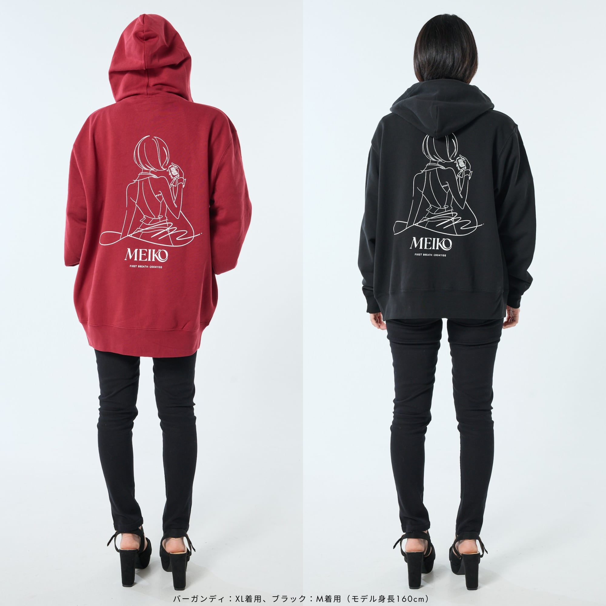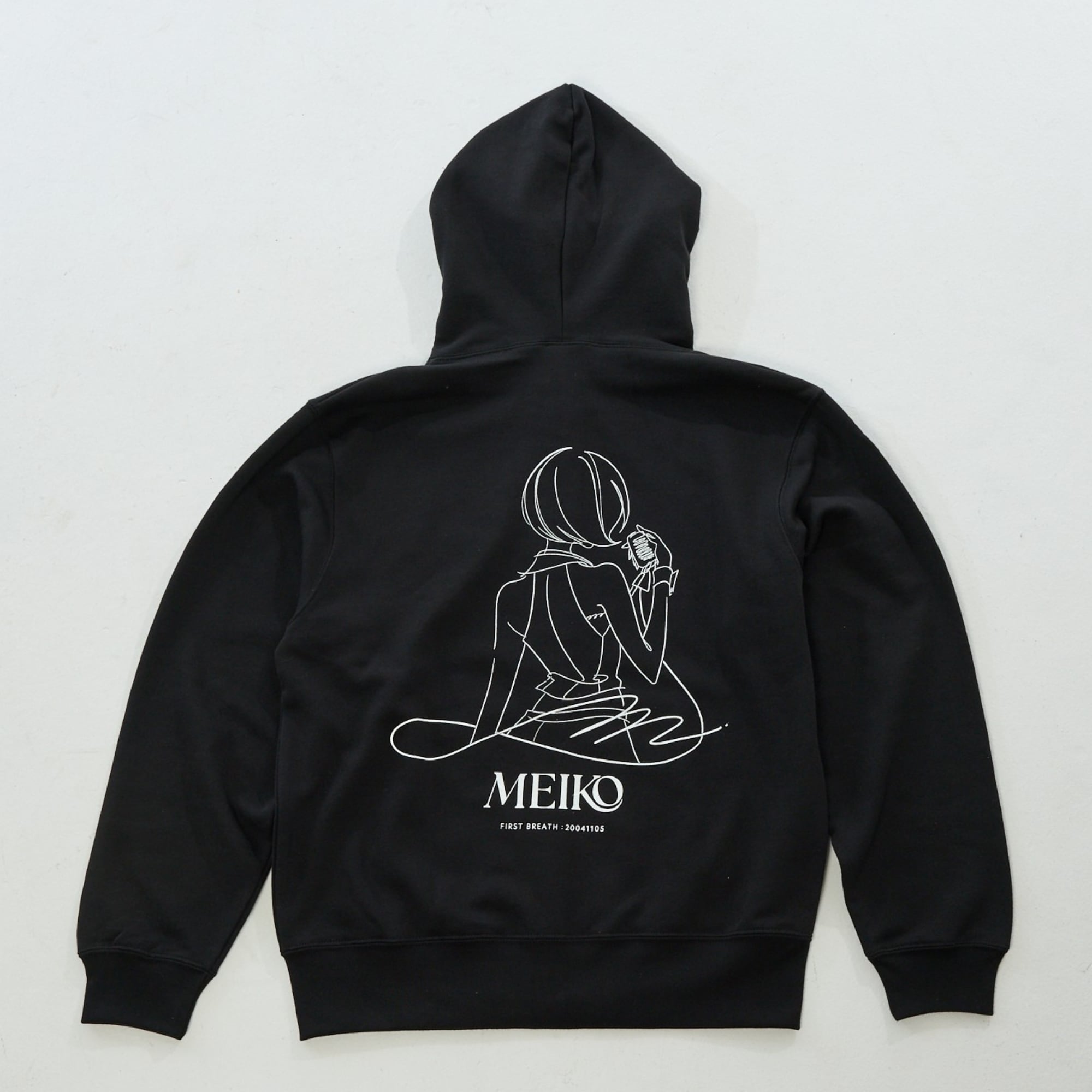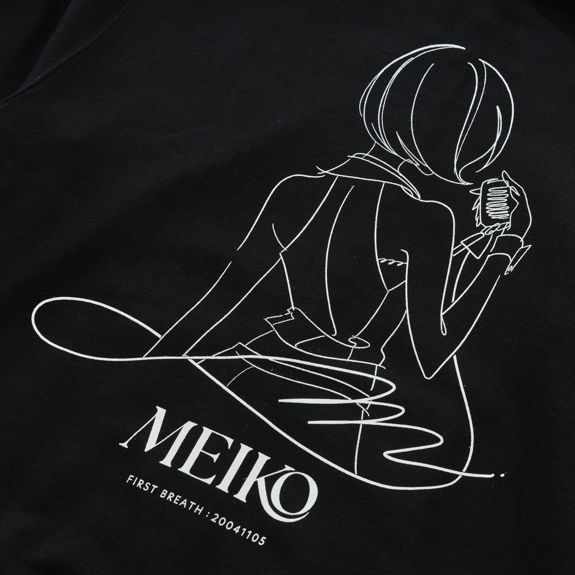 左胸にはMEIKOのモチーフを刺繍で再現、背面にはイラストレーター八三さん描き下ろしのMEIKOイラストをプリントしました。