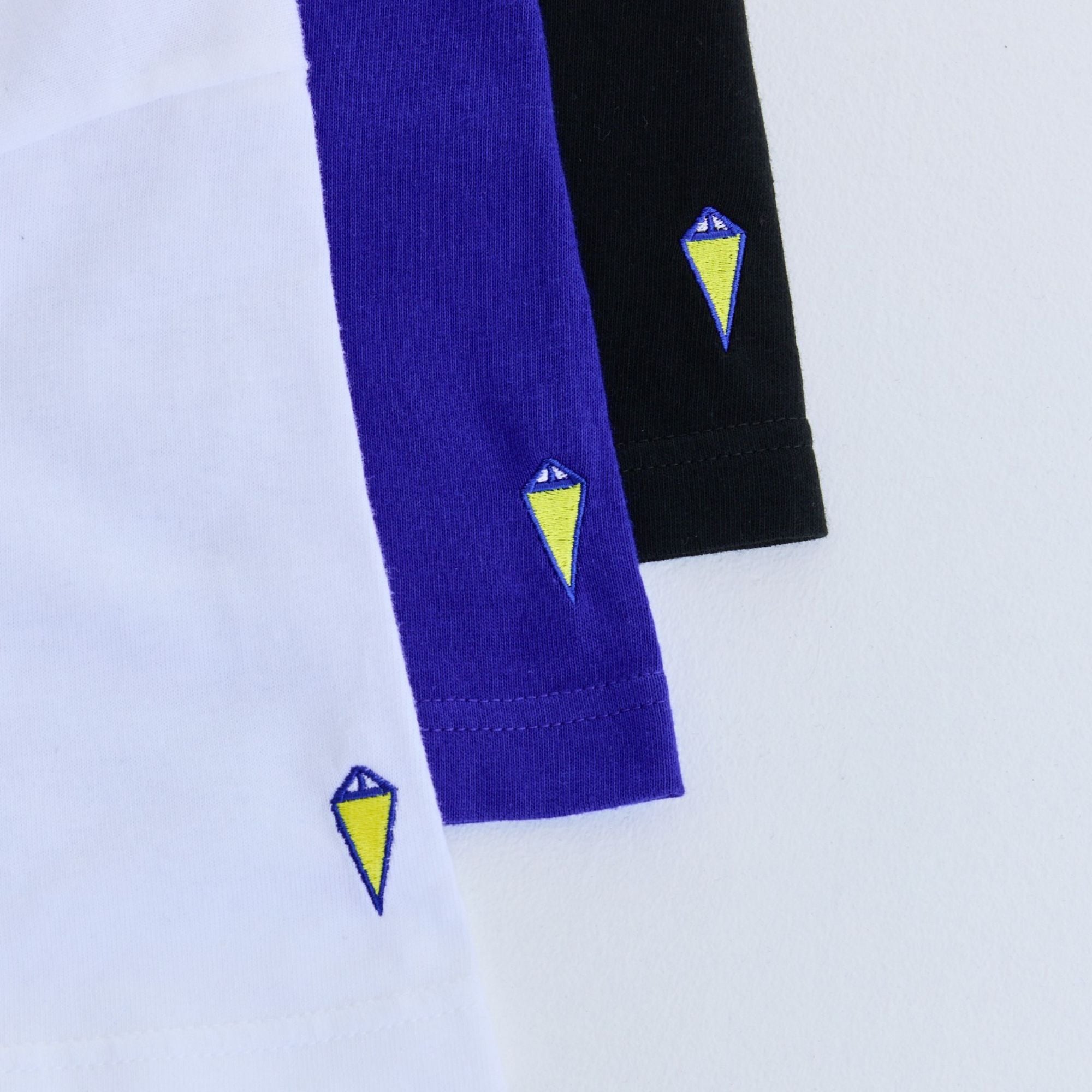 イラストレーター八三さんデザインのKAITOのイラストをシルクプリント、左袖にはKAITOのモチーフを刺繍しました。